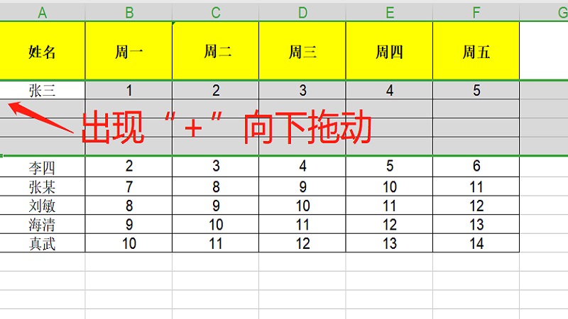 按住Shift键,当鼠标变为" "时,向下拖动我们要插入的行数。
