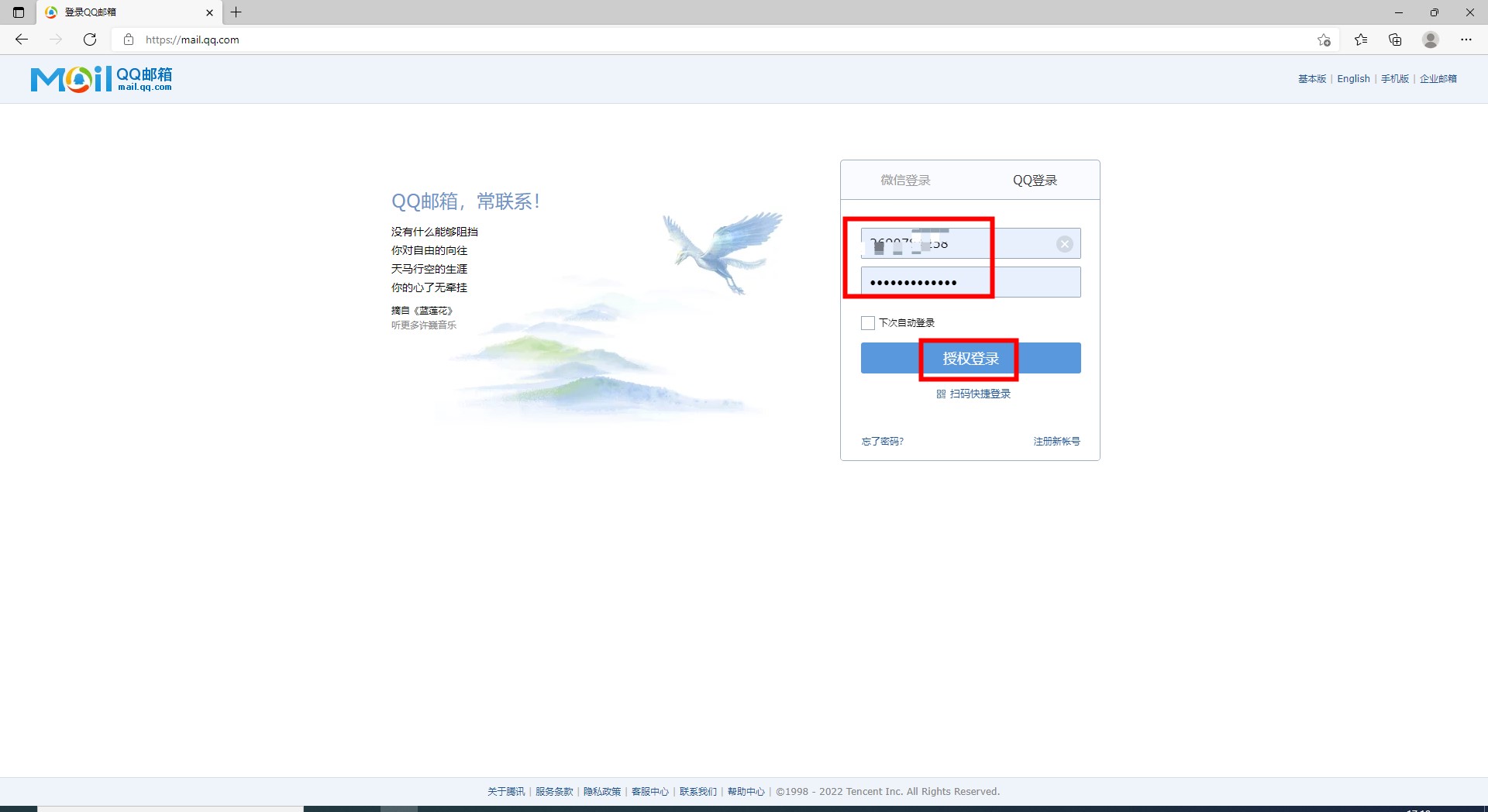 然后输入QQ号和QQ密码,点击“授权登录”。