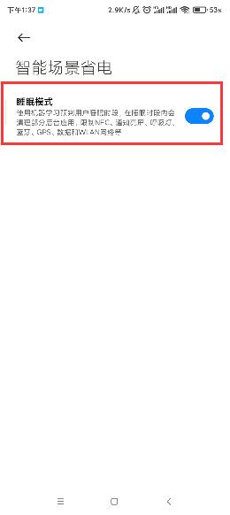 滑动开启智能场景省电中的“睡眠模式”。