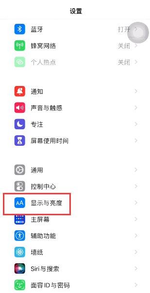 打开iPhone设置,点按下面的“显示和亮度”选项。