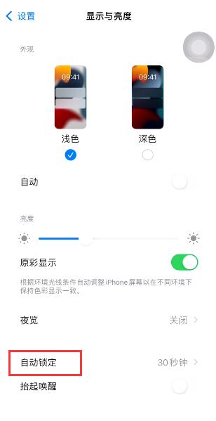 单击“显示和亮度”页面中的“自动锁定”选项。