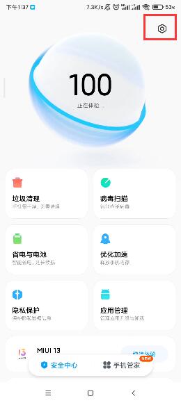 打开手机管理器,点击右上角的设置按钮。
