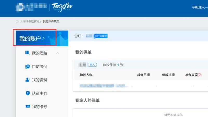 在浏览器中打开保险公司官网,输入个人信息登录。