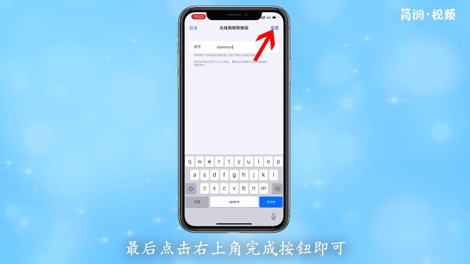 4.删除密码后,输入新密码,最后点击右上角的“完成”按钮。