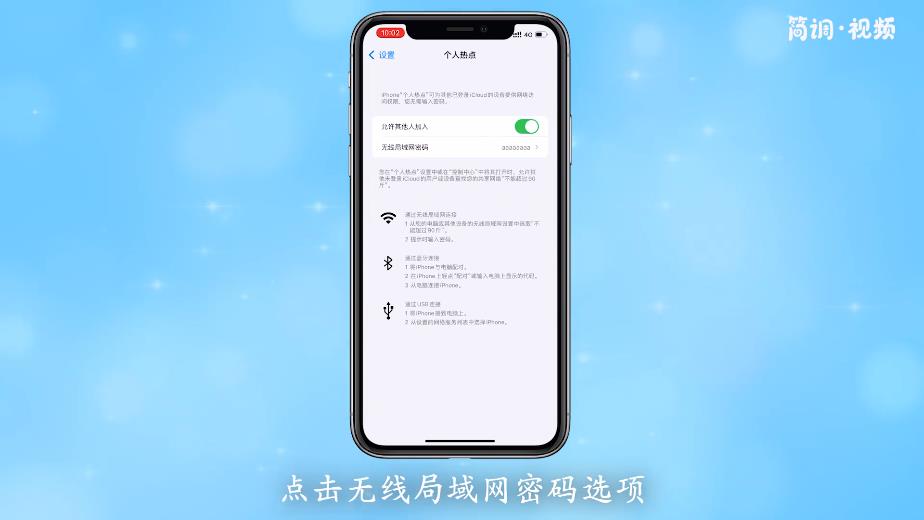苹果11手机热点开启后,其他人无法连接。可能的原因是输入了对方的热点密码。可以进入个人热点设置页面,重置密码然后链接。具体操作如下:
