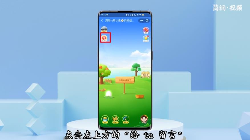 4.进入对方蚂蚁庄园后,点击左上方“给Ta留言”;