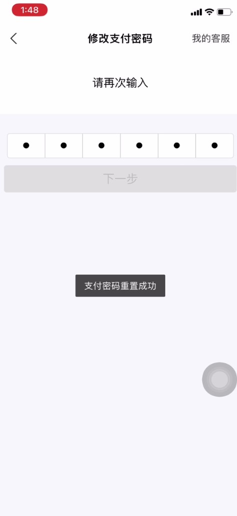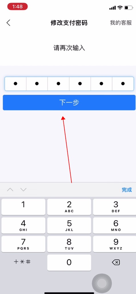 修改后的支付密码,再次输入密码,点击"下一步"。