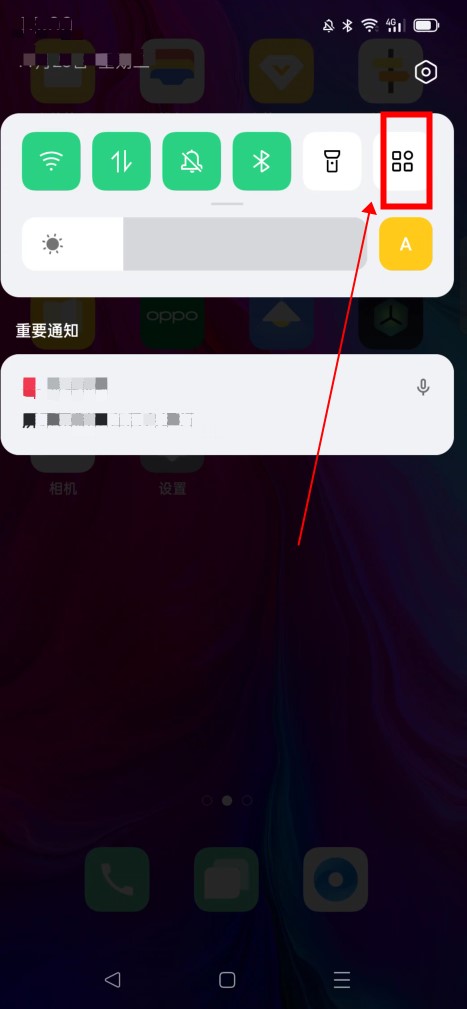 打开手机,下拉屏幕顶部的状态栏,点击右边的方形图标。