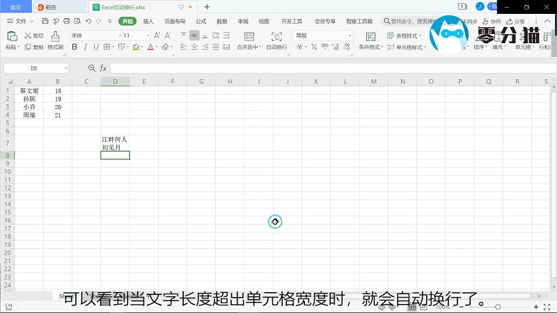 接下来,在单元格中输入内容,可以看到当文本长度超过单元格宽度时,会自动换行。