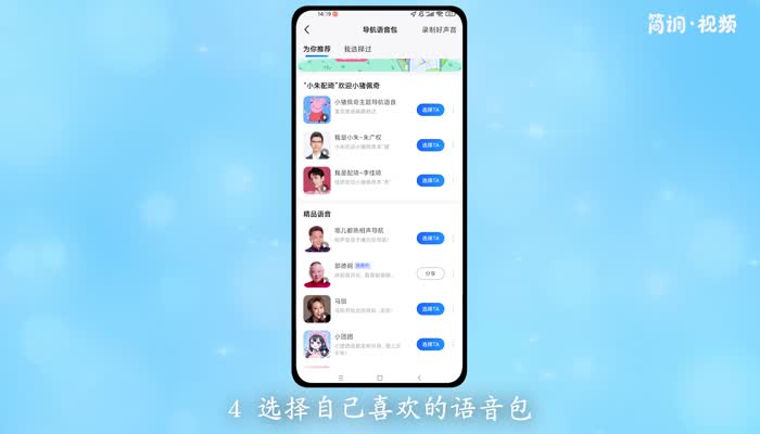 4.选择自己喜欢的语音包,然后点击语音包右侧的“选择ta”即可成功设置语音包。