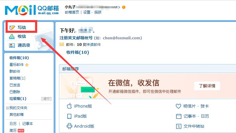 可以在邮箱的首页创建电子邮件。以QQ邮箱为例,分为以下三个步骤: