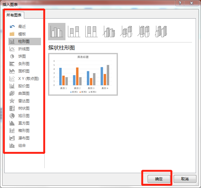 4.选择图表类型,然后单击确定。