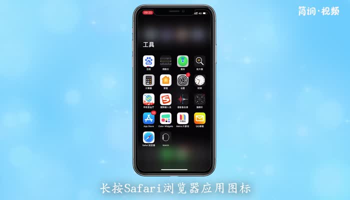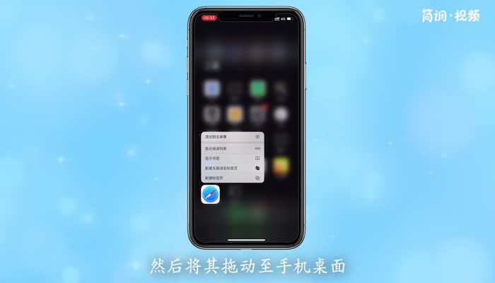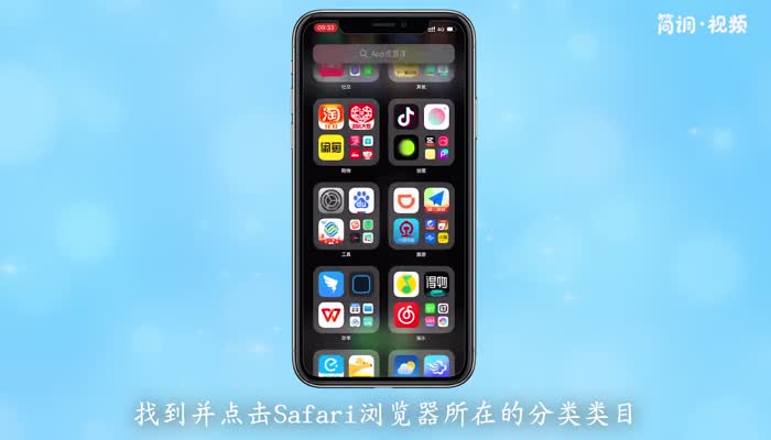 3.打开类别页面后,按住Safari浏览器应用图标,然后拖动到手机桌面;