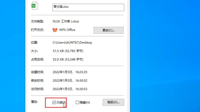 当Excel处于只读状态时,您只需取消选中属性中的只读检查即可取消它,这分为以下三个步骤: