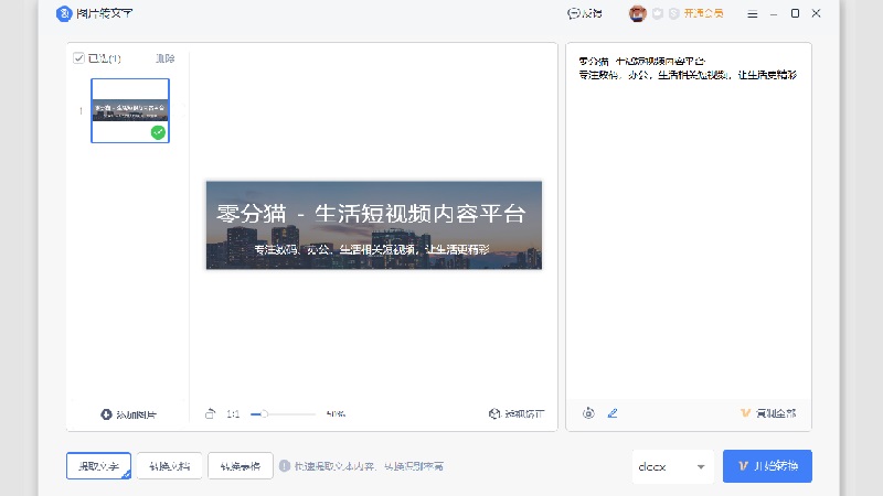 3.弹出图片转换为文本的窗口。过一会儿,图片中的文字就会被识别出来。