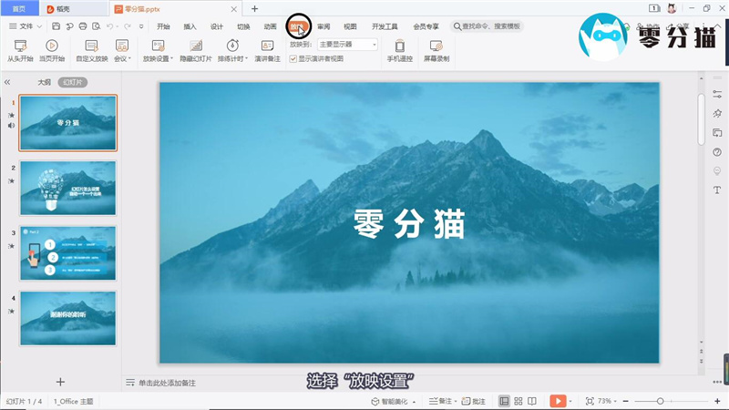 以下面的PPT为例。首先,点击顶部菜单栏中的“显示”并选择“显示设置”。