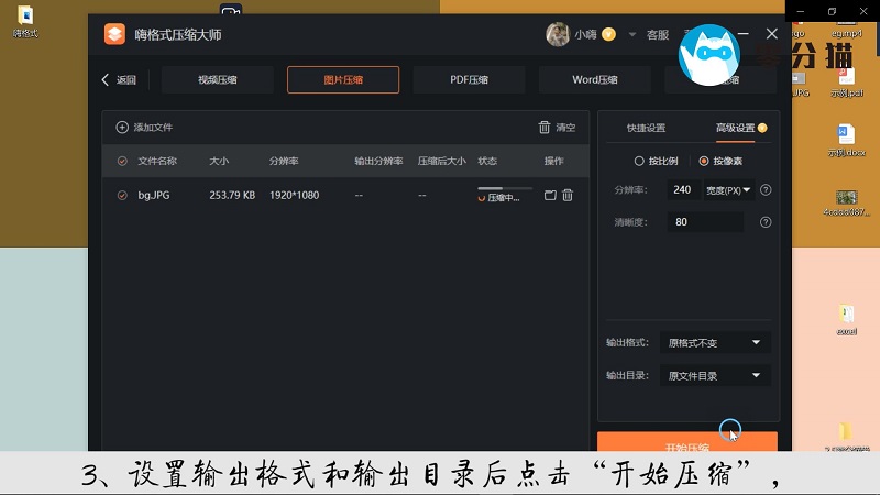 添加要压缩的图片,设置压缩模式,在高级设置中调整长宽比、清晰度、分辨率;