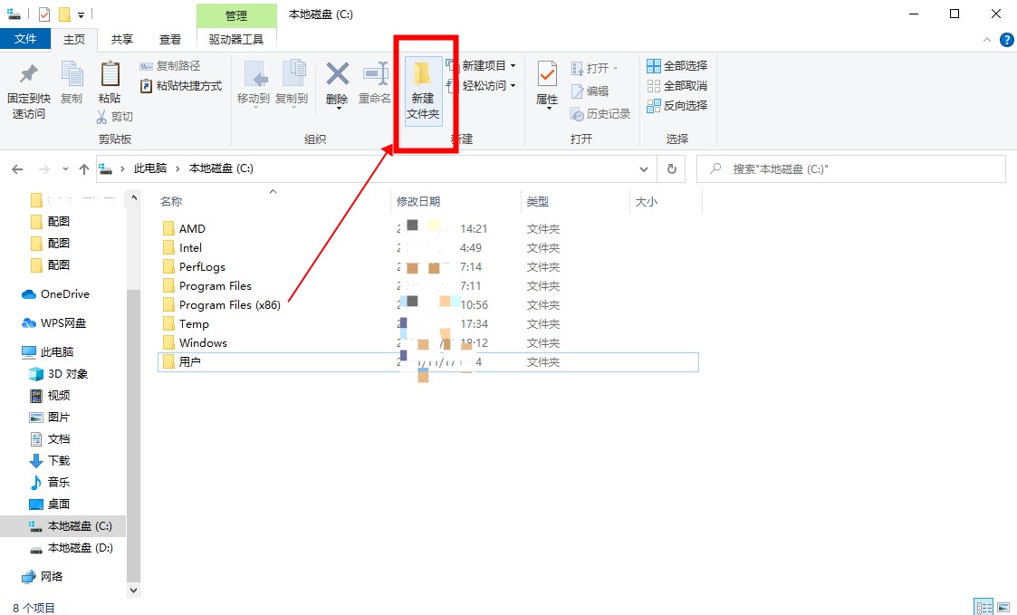 打开这台电脑,选择一个磁盘,然后单击上面的“新建文件夹”。