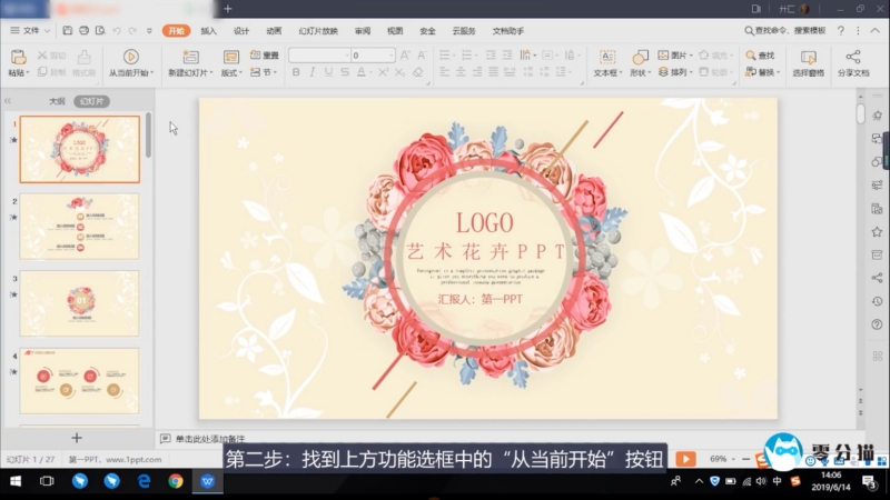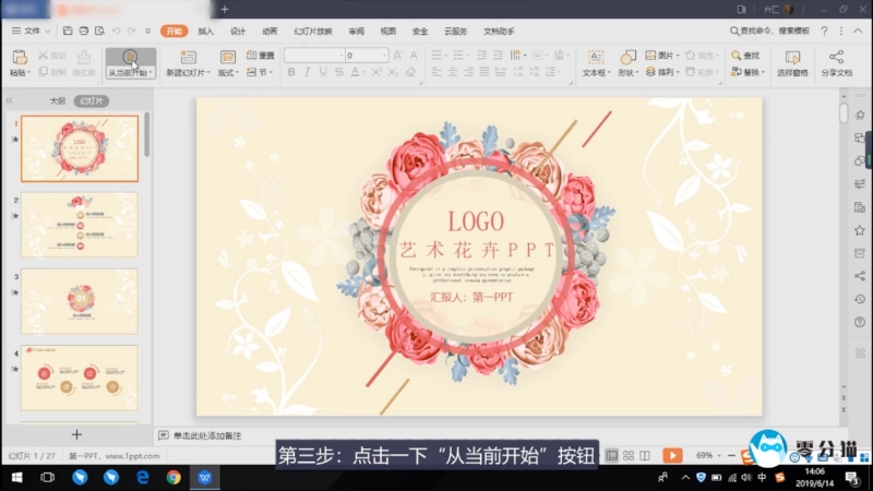 第三步:点击“从现在开始”按钮,我们的PPT就会被放大全屏播放。