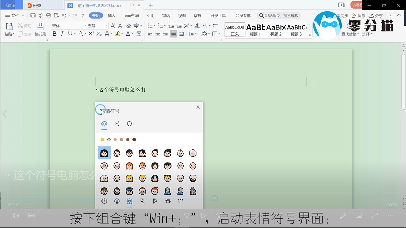 1.将光标停在要插入符号的位置,然后按组合键“Win,启动表情界面;