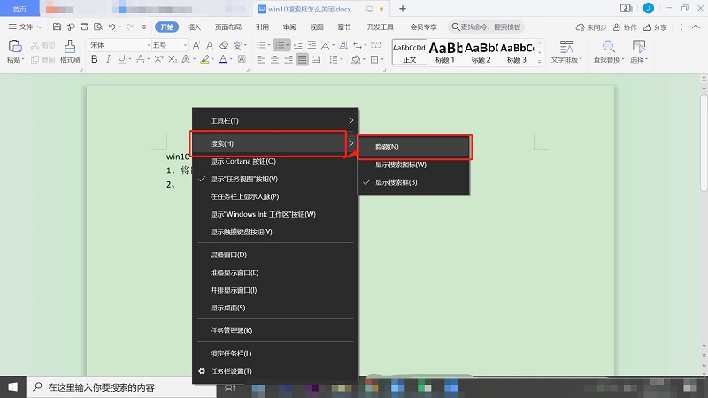 2.选择“搜索”-“隐藏”隐藏搜索框。