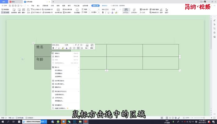 1.在word中插入表格,编辑文字,选择需要水平居中的区域;