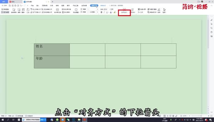 2.会弹出一个表格工具,点击“对齐”下拉箭头;