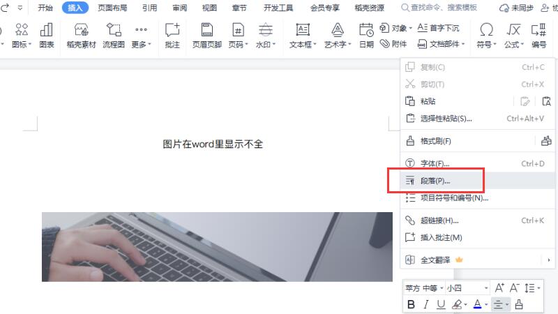图片在word里显示不全,这个问题可以通过修改段落间距和图片布局来解决。这个回答有两种方法。以下是修改段落间距的步骤: