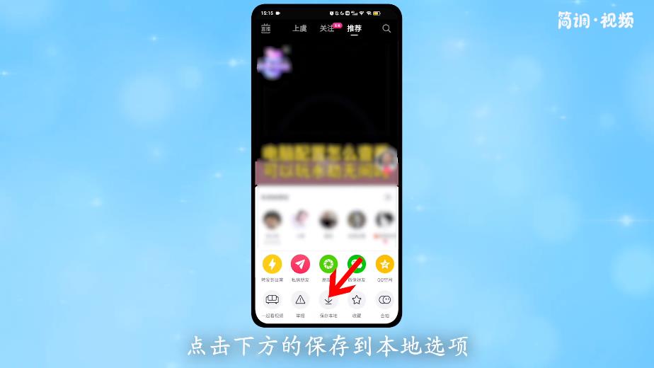4.打开共享窗口后,单击下面的“保存到本地”选项。下载完成后,可以保存到手机相册。需要分享的时候,可以直接发视频。