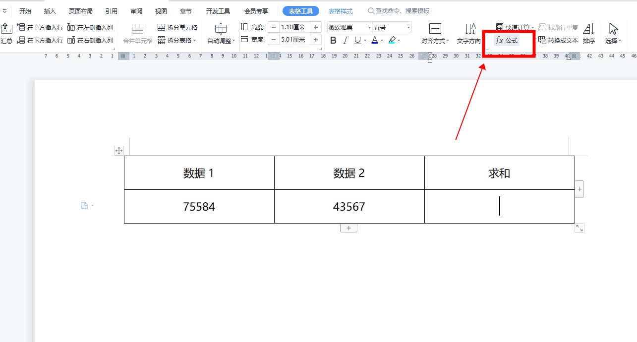 在表格工具中,点击上面的“公式”。