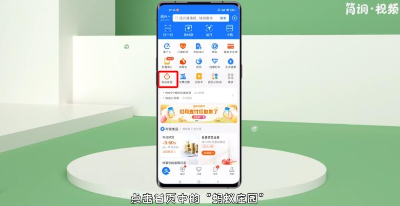 1.打开支付宝,在首页点击“蚂蚁庄园”,进入蚂蚁庄园界面;