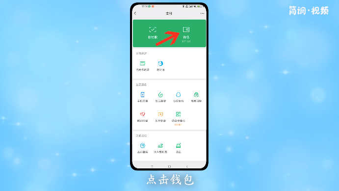 2.在支付界面,点击“钱包”,然后点击“换通”;