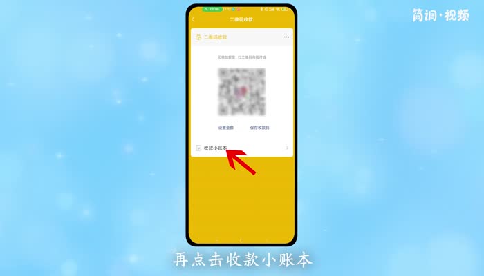 2.在支付界面,点击“二维码收款”,然后点击收款台账;