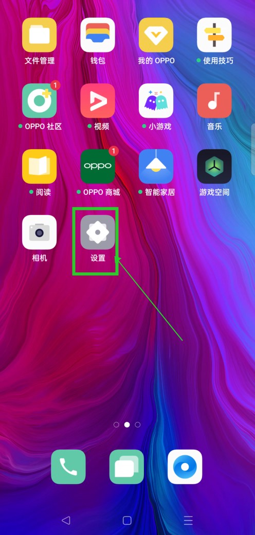 同样,以OPPO Reno 7为例。打开手机后,点击“设置”。