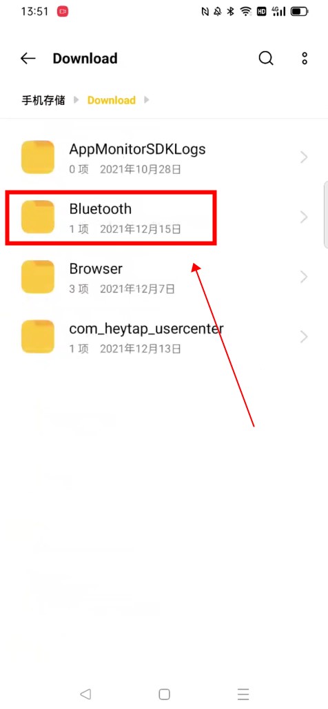 进入该文件夹,点击选择“蓝牙”文件夹。