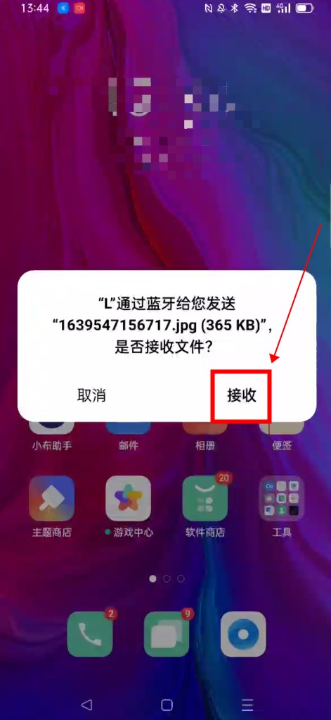 您可以在蓝牙文件夹中查看刚收到的文件。