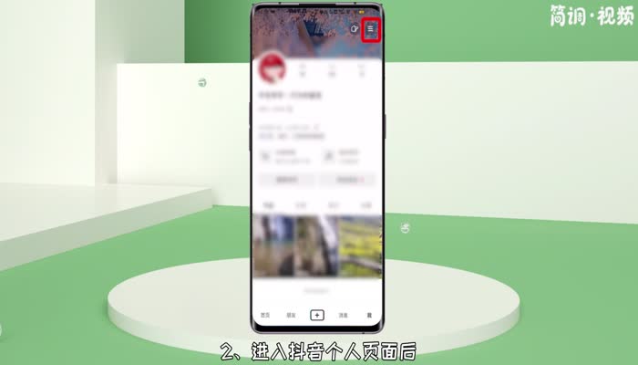 2.进入Tik Tok个人页面后,点击右上方的三个条形图标,然后点击“设置”选项;