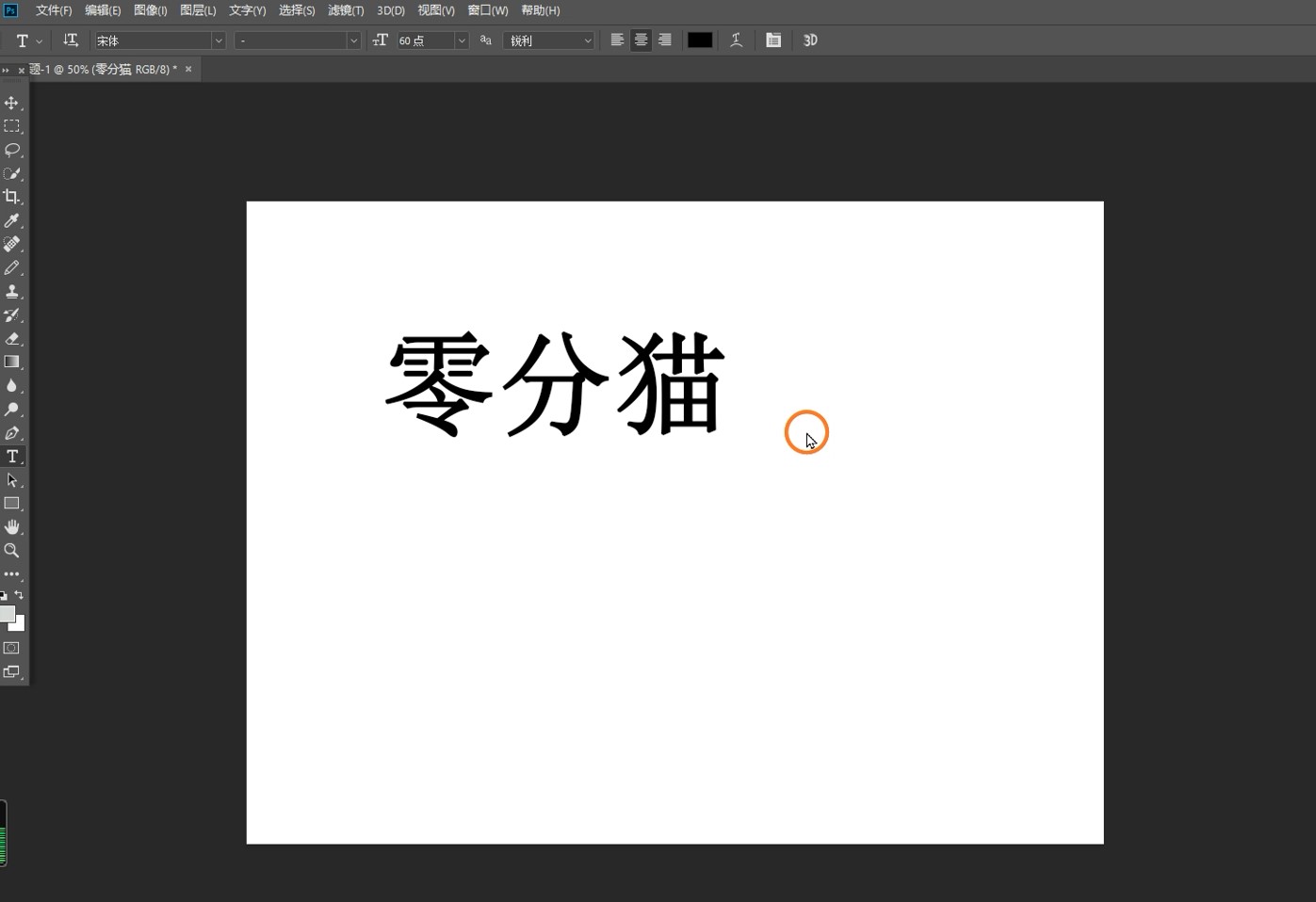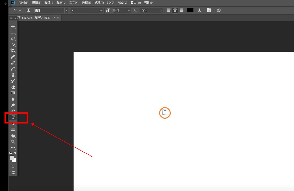 首先在PS中打开一个空白画布,点击左侧工具栏中的“字体”。