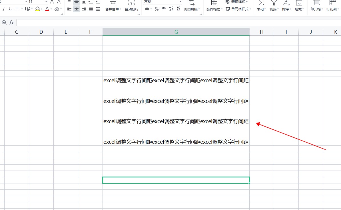 现在调整Excel的行高,就可以调整到需要的文本行距了。