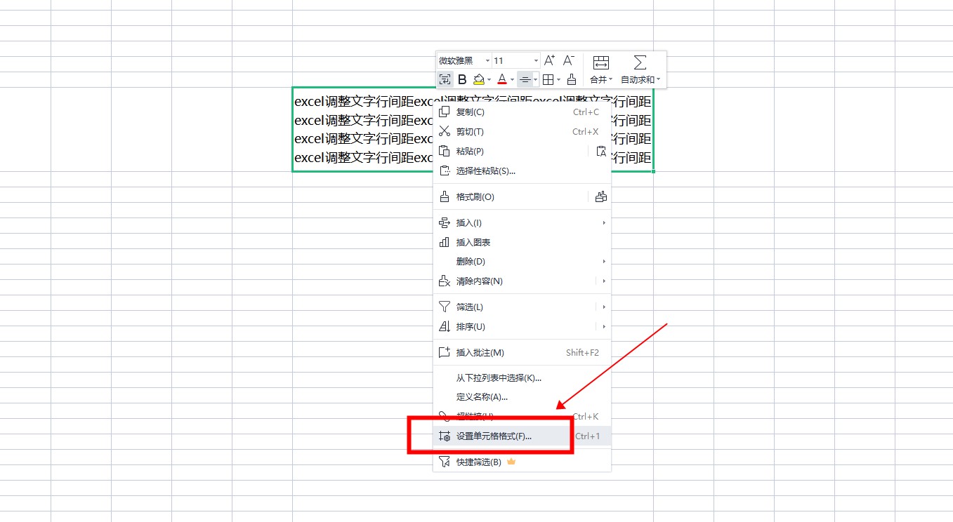 首先,打开Excel文件,选择文本单元格,右键单击“单元格格式”。