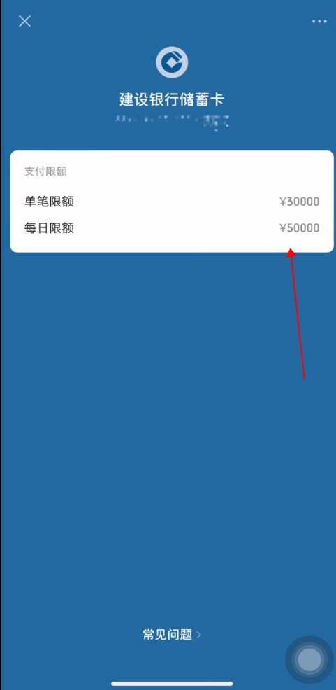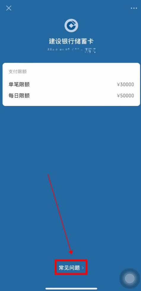 如需了解其他银行卡的交易限额,可点击银行卡下的“常见问题”。
