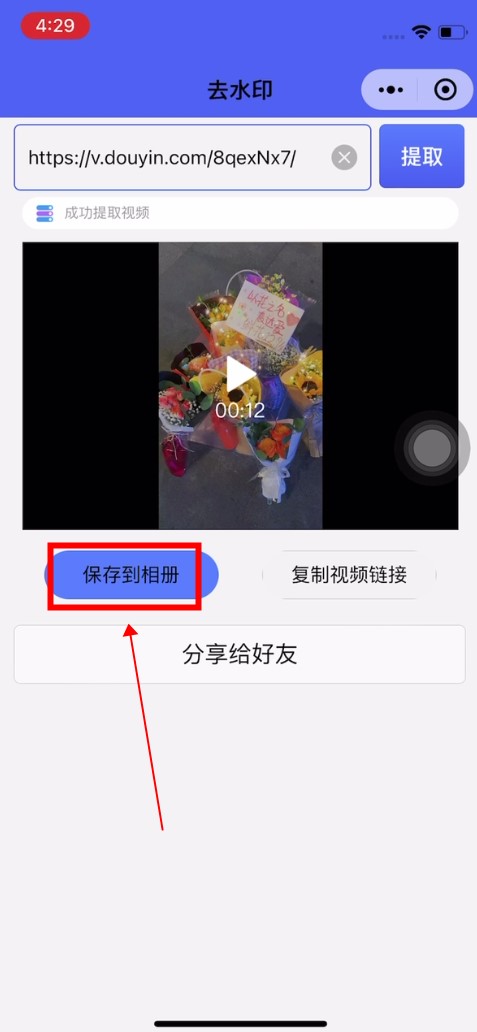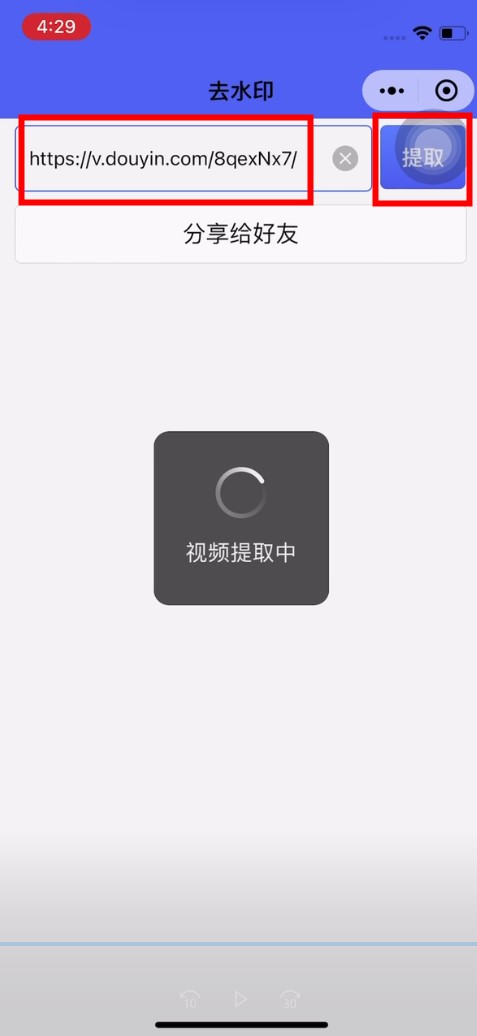 打开水印小程序,粘贴视频链接,然后单击提取。
