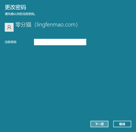 在密码更改页面中输入“当前密码”,然后单击下一步。