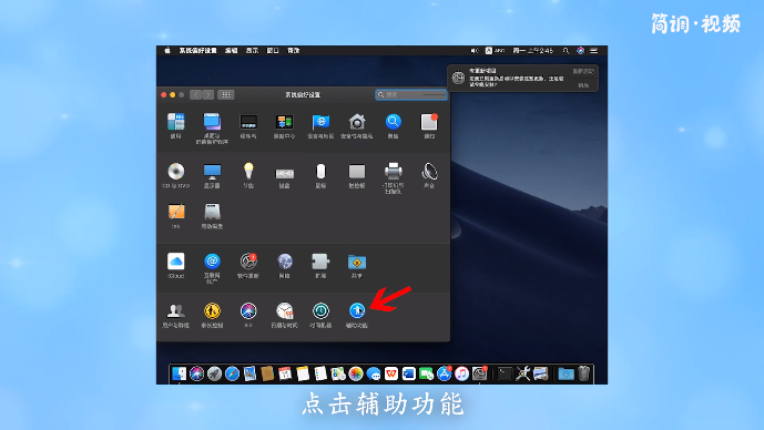 2.在系统偏好设置界面,点击“辅助功能”;