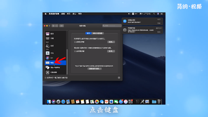 3.在辅助功能界面,点击“键盘”,勾选“启用辅助功能键盘”选项。