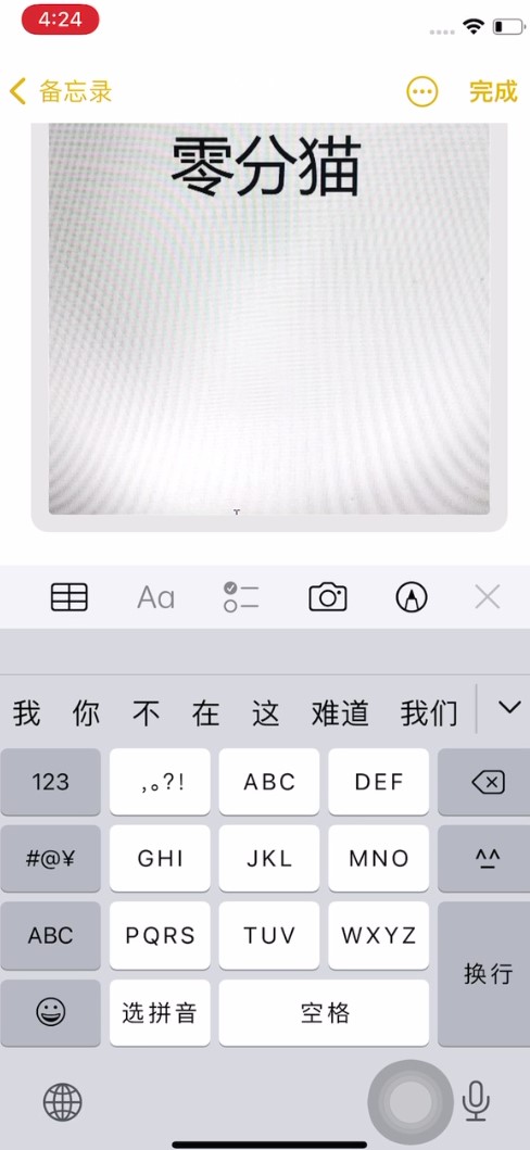 在备忘录中,新建一个文档,点击键盘上方的“相机”图标,选择“扫描文档”。