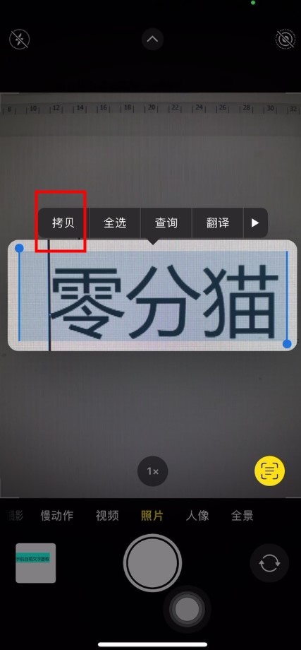 在摄像头中,将摄像头对准文本内容,点击右下角的扫描按钮。