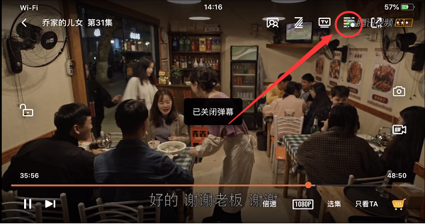 单击视频中的任意位置以显示功能栏。此时滑动关闭弹幕选项。