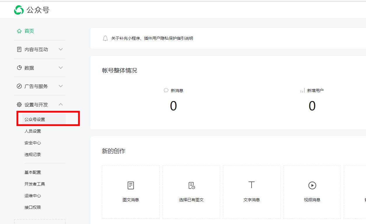 进入微信公众平台后,点击左侧“设置与开发”,选择“微信官方账号设置”。