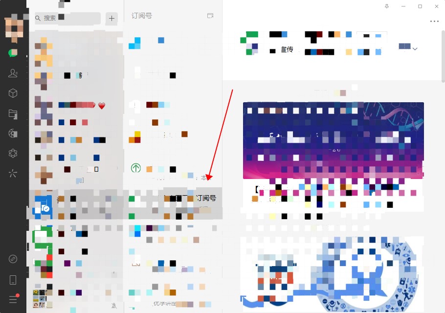 先登录电脑版微信,点击微信里的‘订阅号’选项。